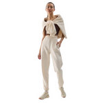 Damskie spodnie dresowe kremowe 4F WSS24 TTROF665