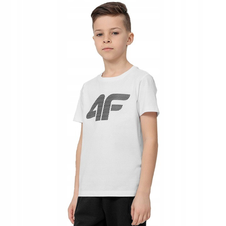 Koszulka chłopięca HJL22 JTSM002 4F sprawdzi się doskonale podczas codziennego użytkowania. Koszulka ma krótki rękawek i zaokrąglony dekolt, co sprawia, że całość wygląda klasycznie. Duży logotyp marki sprawia, że koszulka zyskała sportowego charakteru.