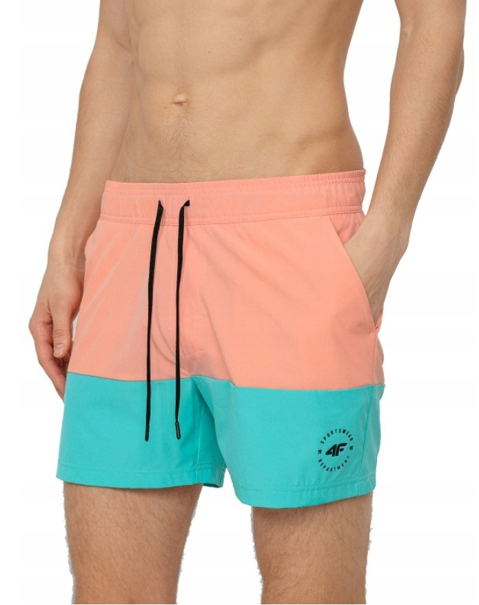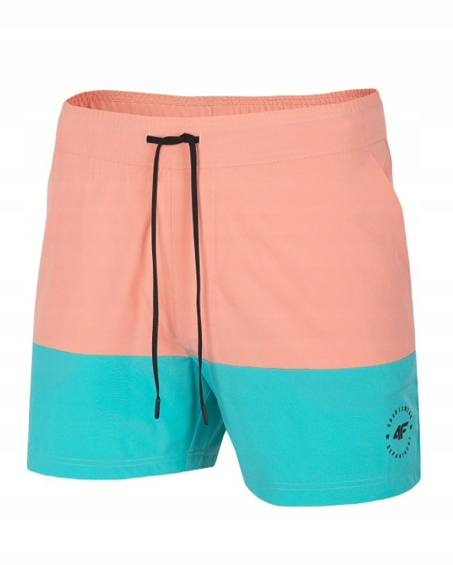 Spodenki plażowe męskie 4F H4L22-SKMT002 z wewnętrznymi majtkami z siatki, wyprodukowane z lekkiego, elastycznego materiału, dzięki czemu zapewnią komfort i swobodę podczas letnich aktywności