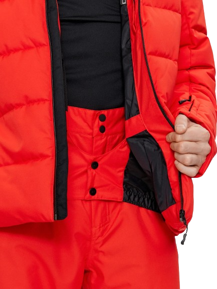 Męska kurtka narciarska 4F to funkcjonalność zamknięta w nowoczesnym stylu. Model z oddychającą membraną Neo Dry 5 000 zapewnia komfort i dobrą ochronę przed zmiennymi warunkami na stoku. Klejone szwy i hydrofobowa impregnacja materiału minimalizują absorpcję wody z zewnątrz. Wszyty od wewnątrz pas przeciwśnieżny z antypoślizgowym wykończeniem zabezpiecza przed wsypywaniem się śniegu pod kurtkę. Zamek główny z wewnętrzną listwą przeciwwiatrową zwiększa ochronę przed wiatrem i deszczem, tworząc szczelną osłonę. Jego wykończenie patką zabezpieczającą podbródek podnosi komfort noszenia. Kurtka oferująca wysoki komfort cieplny zyskała regulowany dół, co przekłada się na lepsze dopasowanie i pełną swobodę ruchów, dostosowaną do Twoich zimowych akrobacji.