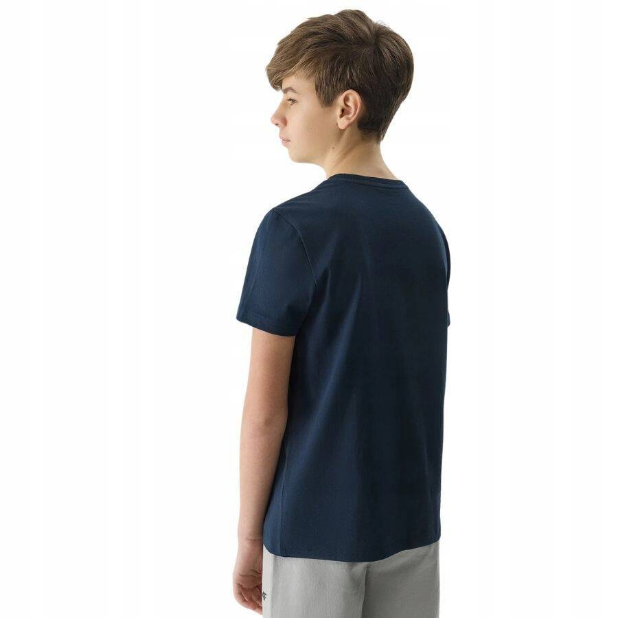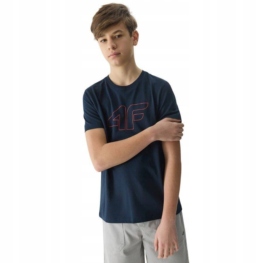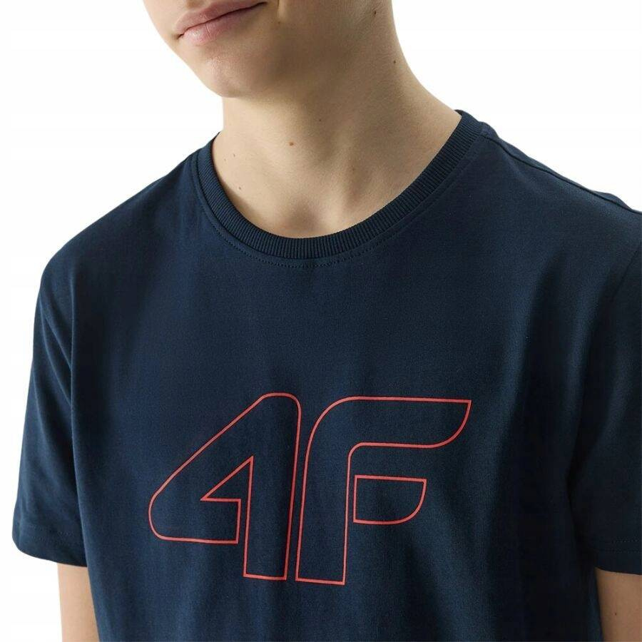 T-shirt z nadrukiem idealnie sprawdzi się jako element zarówno casualowych, jak i sportowych stylizacji na co dzień. Posiada krój regular, który wygodnie dopasowuje się do sylwetki. Splot single jersey z jednostronną gładką powierzchnią sprawia, że koszulka jest elastyczna i komfortowa w noszeniu. T-shirt 4F chłopięcy jest wykonany w 100% z bawełny, dzięki czemu jest miękki, trwały i przyjemny w dotyku. Okrągły dekolt jest zakończony lekkim ribowaniem. Z przodu widoczny nadruk 4F.
