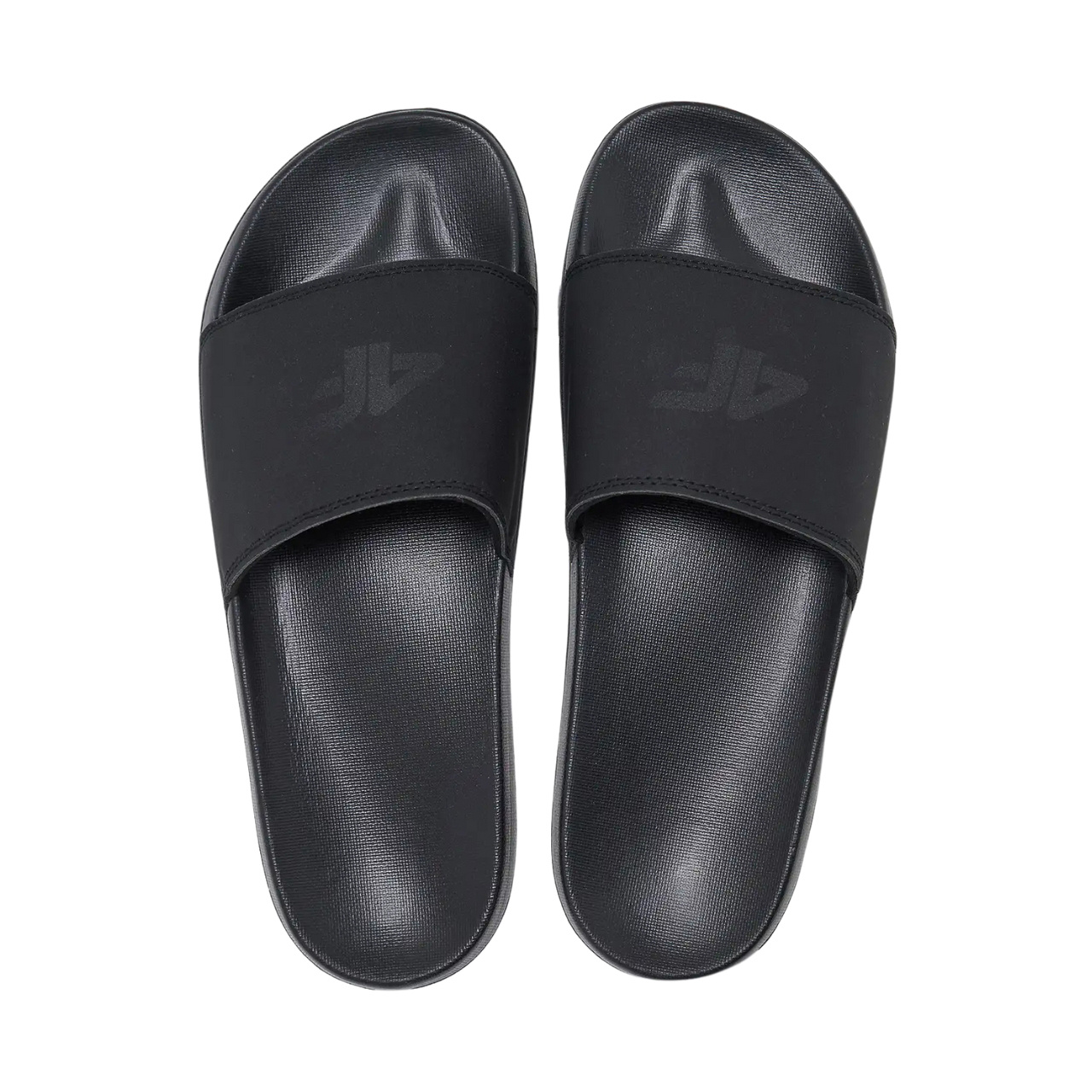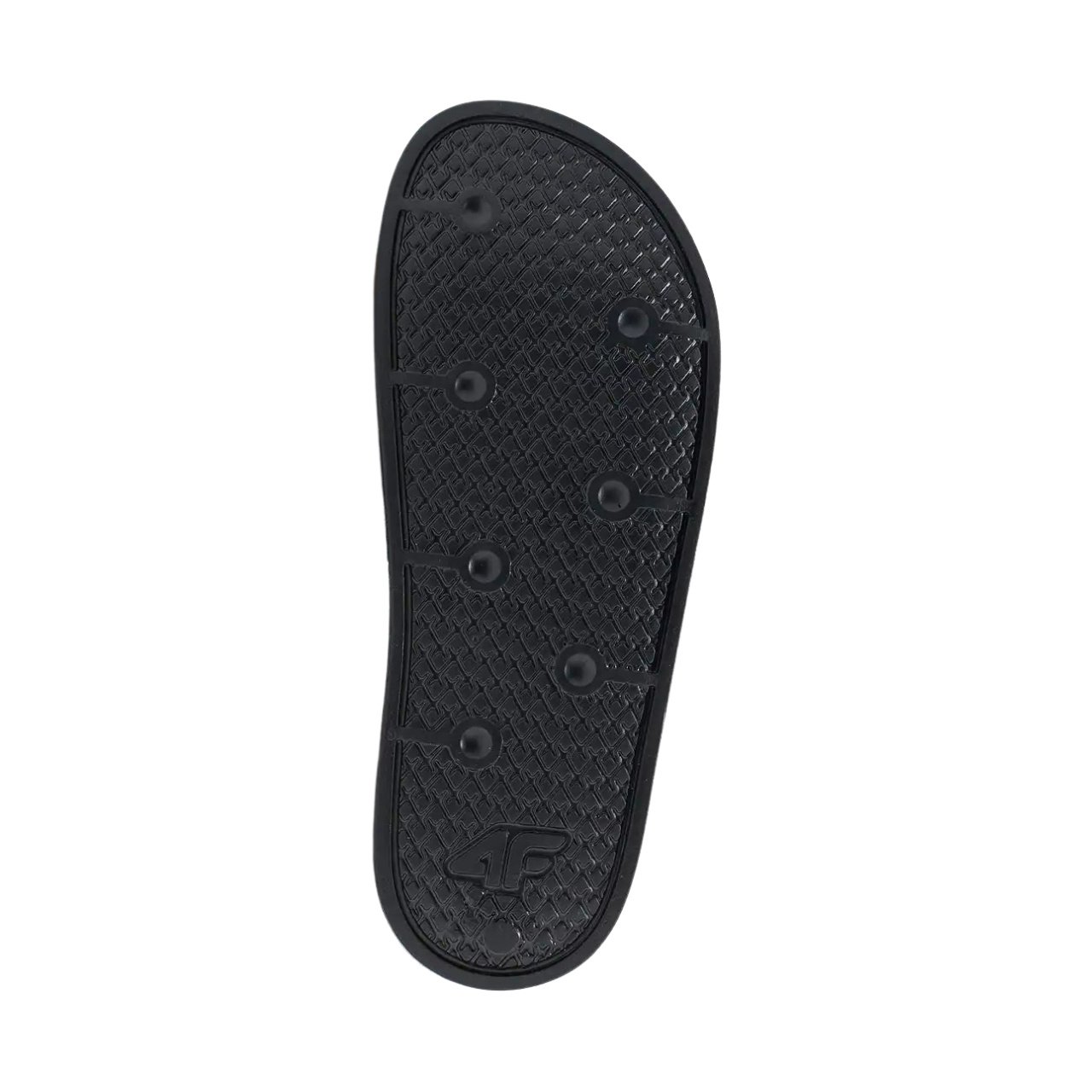 Klapki 4F wybierane są przez mężczyzn szukających funkcjonalnego, letniego obuwia lub miłośników sportów wodnych. Design z logo tworzy nowoczesny model idealnie wpasowujący się w trendy. Klapki wykonano z materiałów syntetycznych, które są łatwe w czyszczeniu i nie obciążają stóp. Lekko wyprofilowane, teksturowane wnętrze zapobiega ślizganiu się stóp w obuwiu, a wytrzymała i lekka podeszwa z pianki EVA dba o długotrwałą wygodę. Uzupełnij letnią garderobę o klapki 4F, które wentylują stopy zapobiegając ich przegrzaniu.