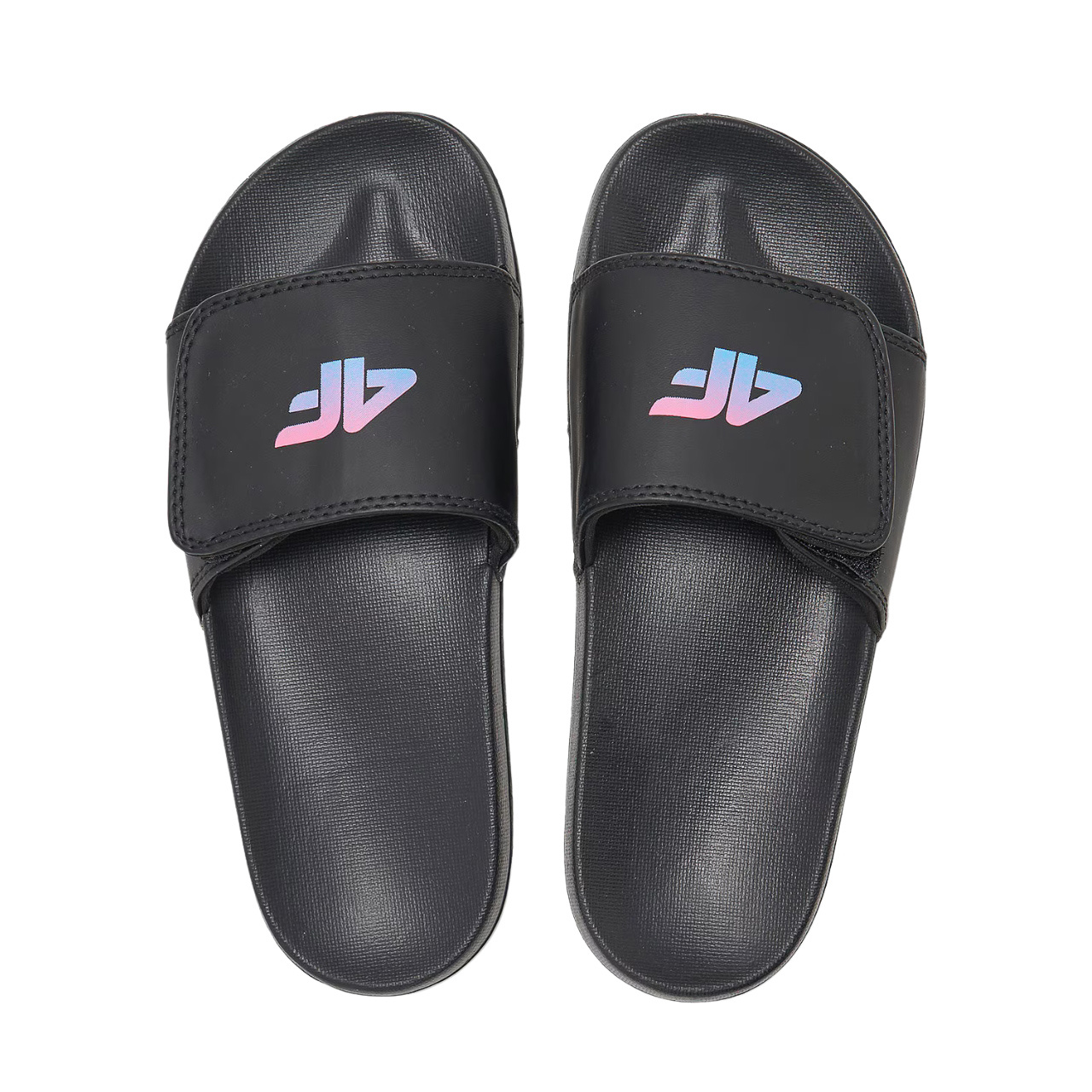 Klapki dla dziewczynki 4F pozwolą zachować długotrwałą wygodę podczas wizyty na basenie oraz spacerów i zabaw w ciepłe dni. Model z logo na froncie zachwyci każdą, młodą damę, która już od najmłodszych lat kreuje własny styl. Cholewka wykonana z materiałów syntetycznych łączy trwałość z nowoczesnym wyglądem. Szeroki pasek zapinany na rzep zapobiega zsuwaniu klapek podczas chodzenia. Teksturowana, profilowana wkładka zwiększa przyczepność stopy i zapewnia optymalne dopasowanie. Wytrzymała i lekka podeszwa z pianki EVA oferuje skuteczną amortyzację i zmniejsza wagę obuwia.