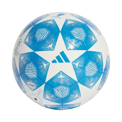 Piłka nożna adidas. Design piłki czerpie z inspirowanego lwem looku oficjalnej piłki meczowej. Standardowy rozmiar. Syntetyczna, maszynowo szyta powłoka z TPU. Butylowy pęcherz doskonale trzyma powietrze. Nadrukowane logo Ligi Mistrzów UEFA. Model wymaga napełnienia powietrzem.