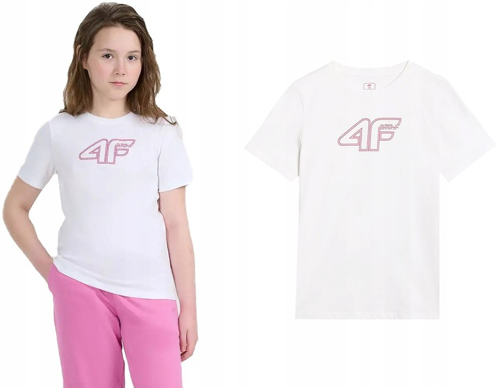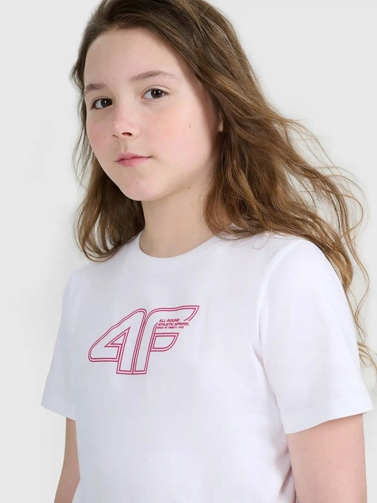 Koszulka dziewczęca 4F 4FJWAW25TTSHF2388 biała