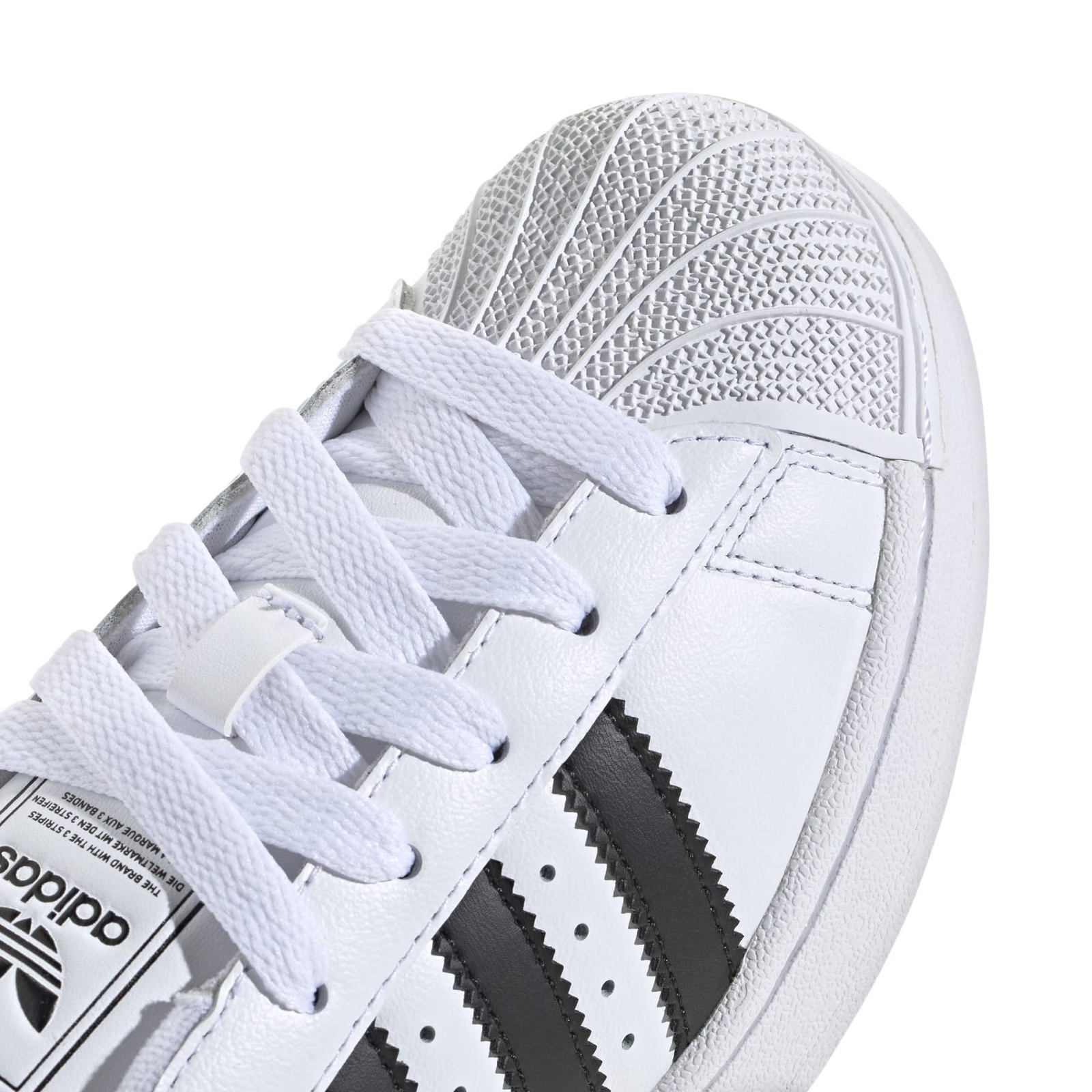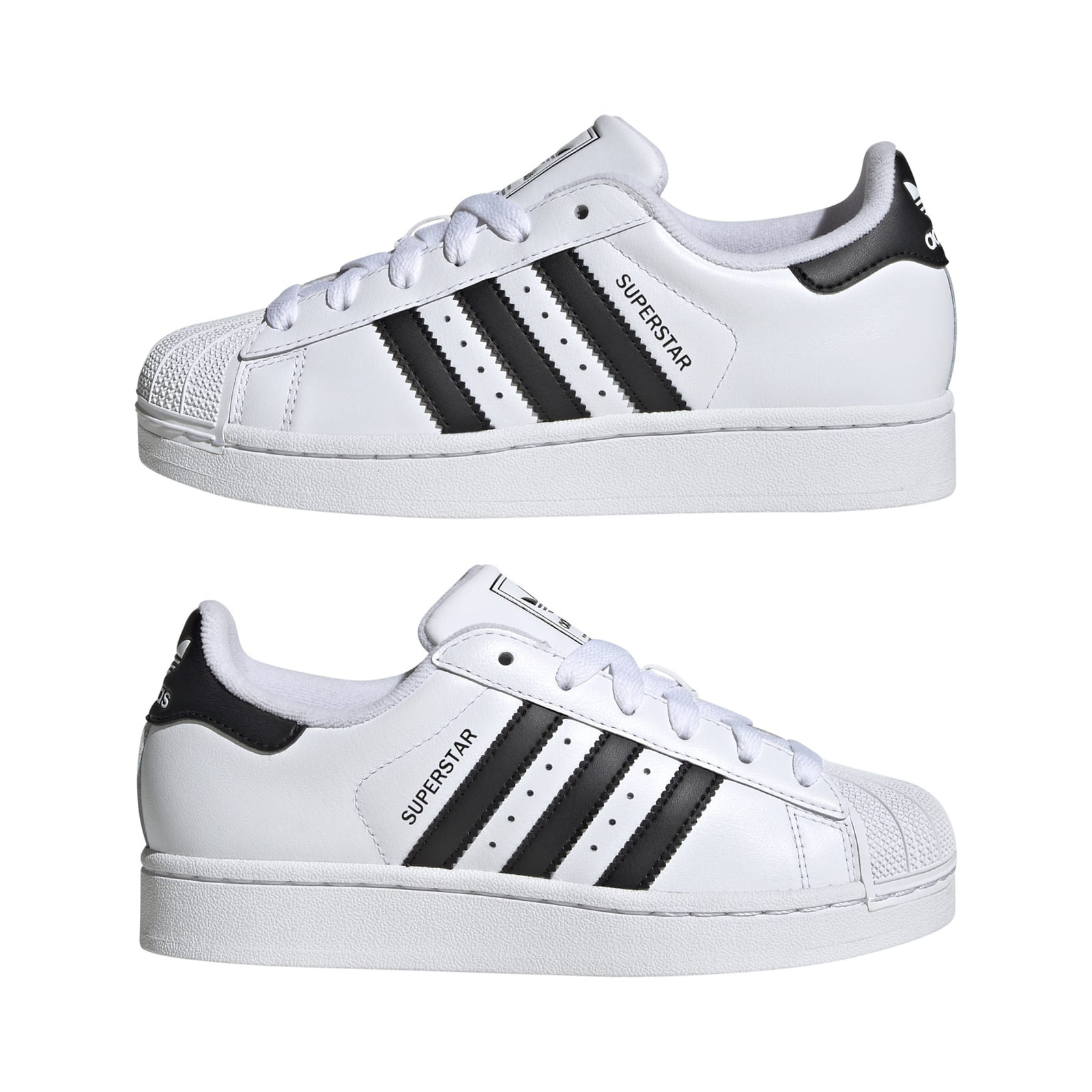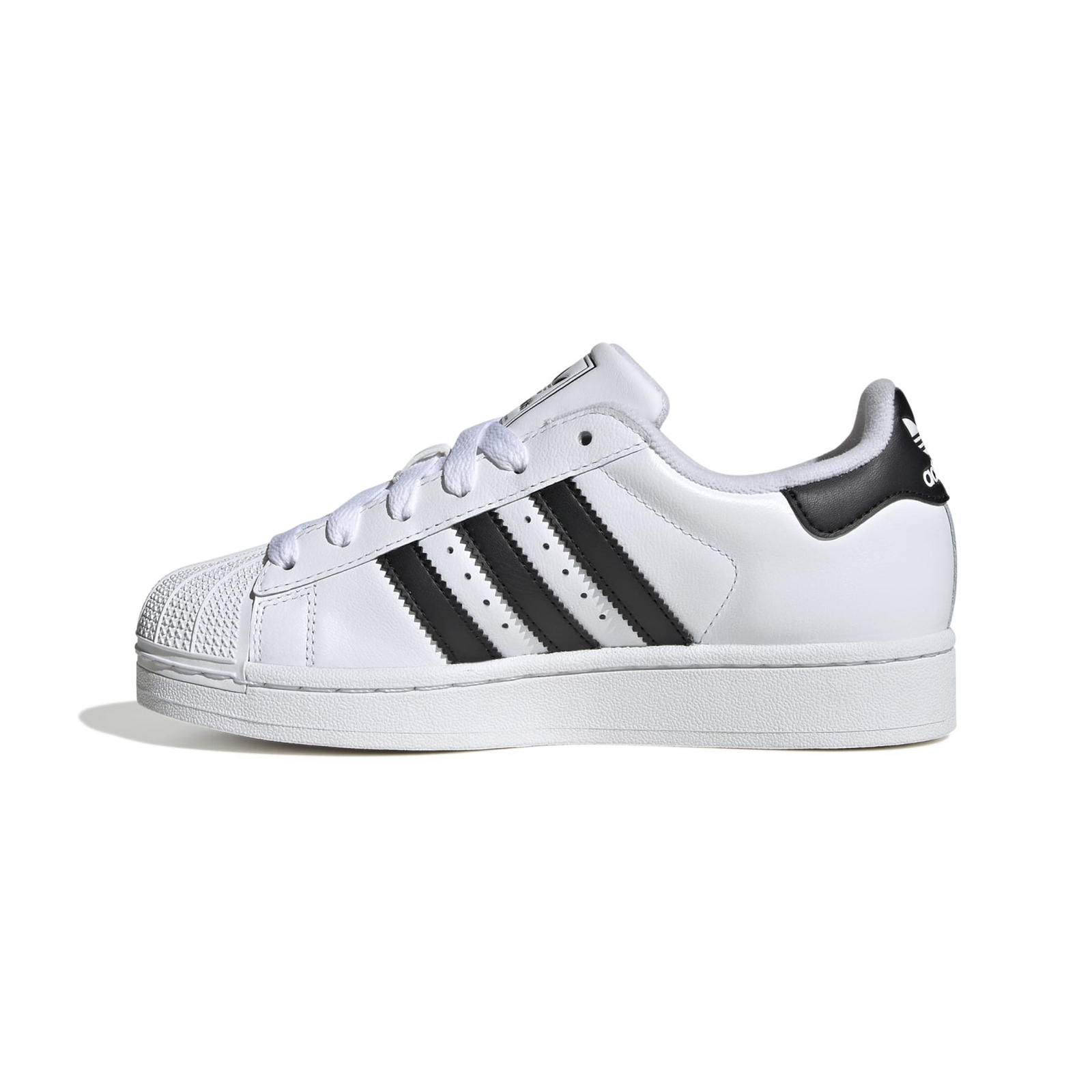 Buty sportowe Superstar II marki adidas powracają i są gotowe, aby ponownie zdominować ulice. Dzięki kultowej konstrukcji muszli i ząbkowanym 3 paskom buty te spędziły ponad 50 lat, łącząc sport i styl uliczny. Odświeżone w czystej, uniwersalnej czerni i bieli, te buty sportowe dla juniorów zapewniają całodzienny komfort dzięki formowanej wkładce i strukturalnej skórzanej cholewce. Stabilna gumowa podeszwa z klasycznym wzorem w jodełkę zapewnia stabilność i styl. Można je nosić praktycznie do wszystkiego, od błyszczących szortów do koszykówki po luźne dżinsy lub spodnie cargo.
