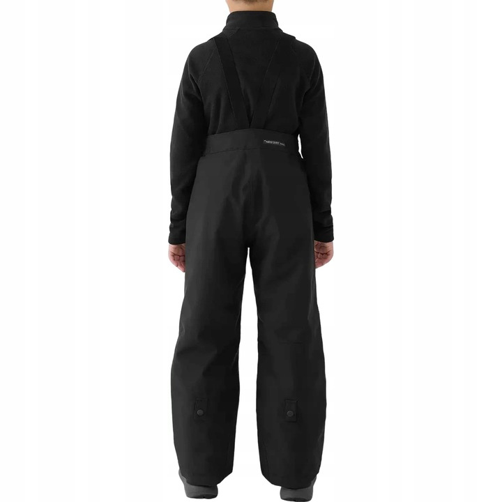 Chłopięce spodnie narciarskie od marki 4F to doskonały wybór na zimowe przygody. Dzięki zastosowanej membranie Neo Dry oraz hydrofobowej impregnacji, produkt zapewnia skuteczną ochronę przed wilgocią, a klejone szwy dodatkowo zapobiegają przenikaniu wody. Zintegrowane, regulowane szelki oraz elastyczna gumka w pasie gwarantują wygodne dopasowanie.