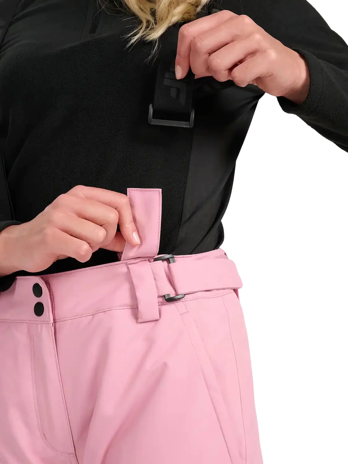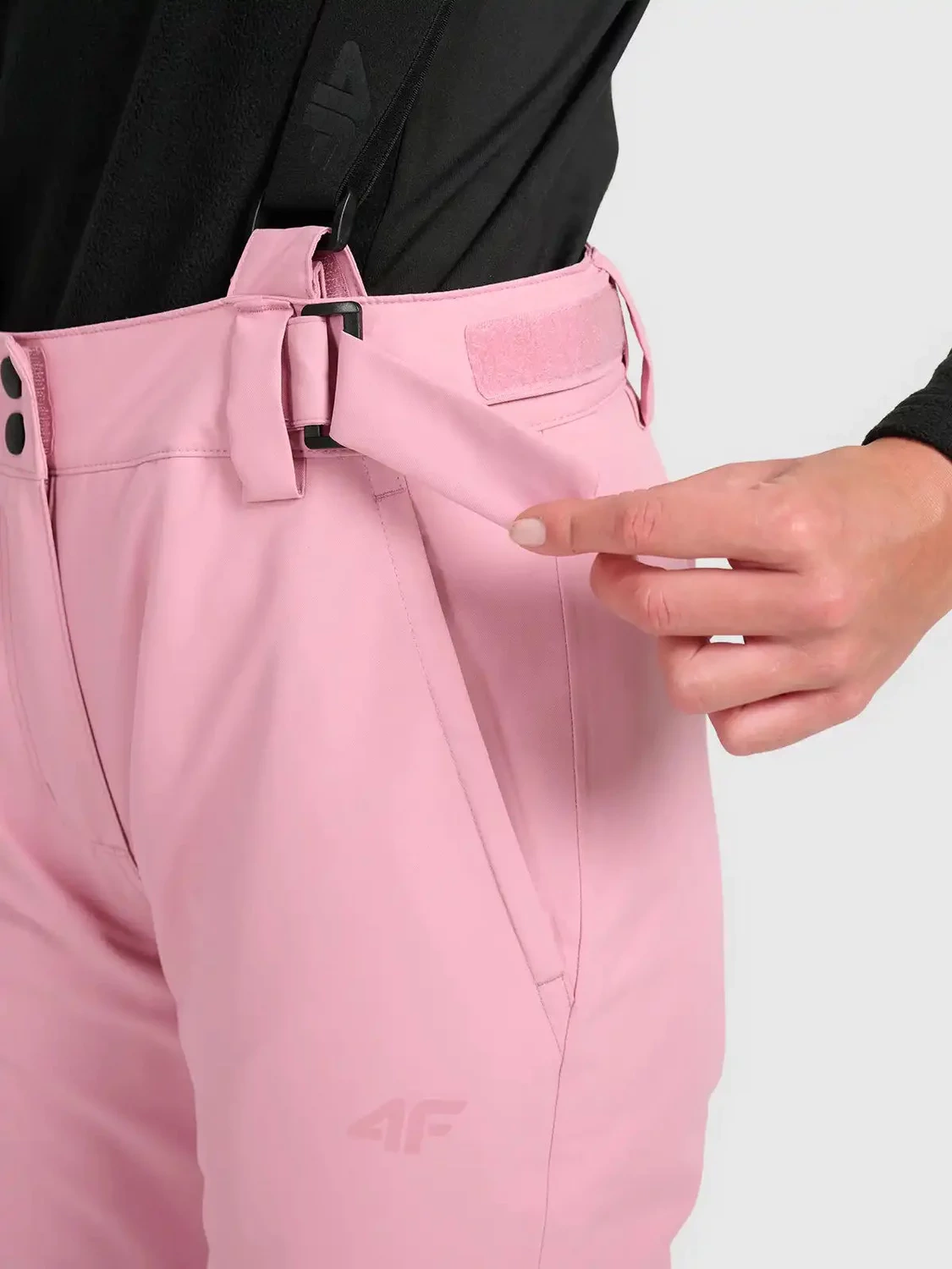 - Zapięcie w pasie: zamek + napy